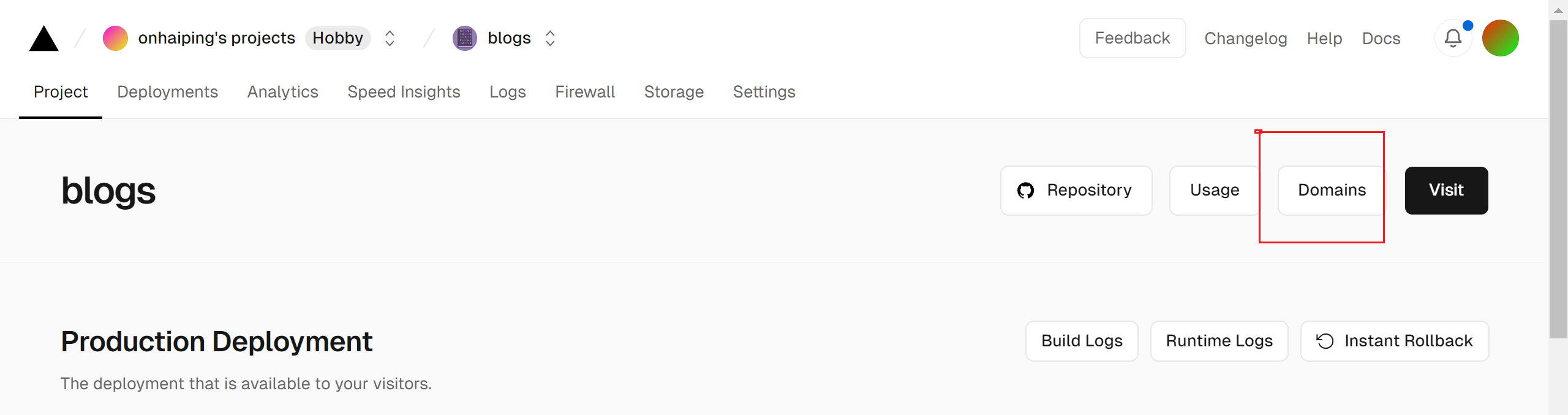 在Vercel上为自己部署好的前端应用添加新的域名解析