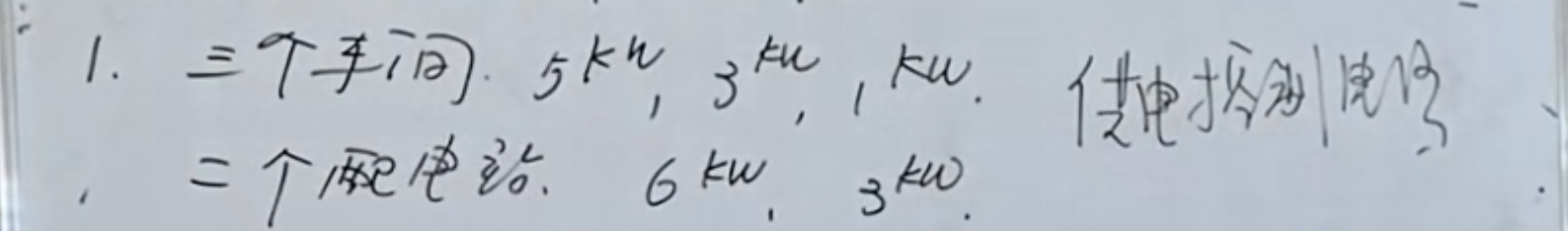 题目:有三个车间,每个车间的耗电功率如图上所示。还有两个配电站,提供的功率如图上所示。问题是设计一个供电控制电路,使其最节能。
