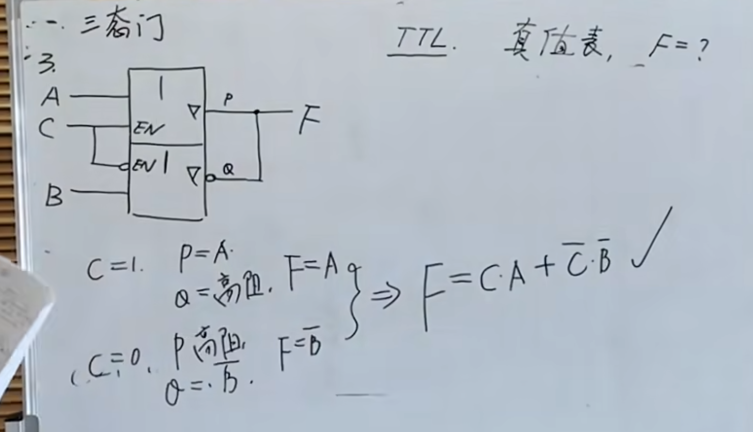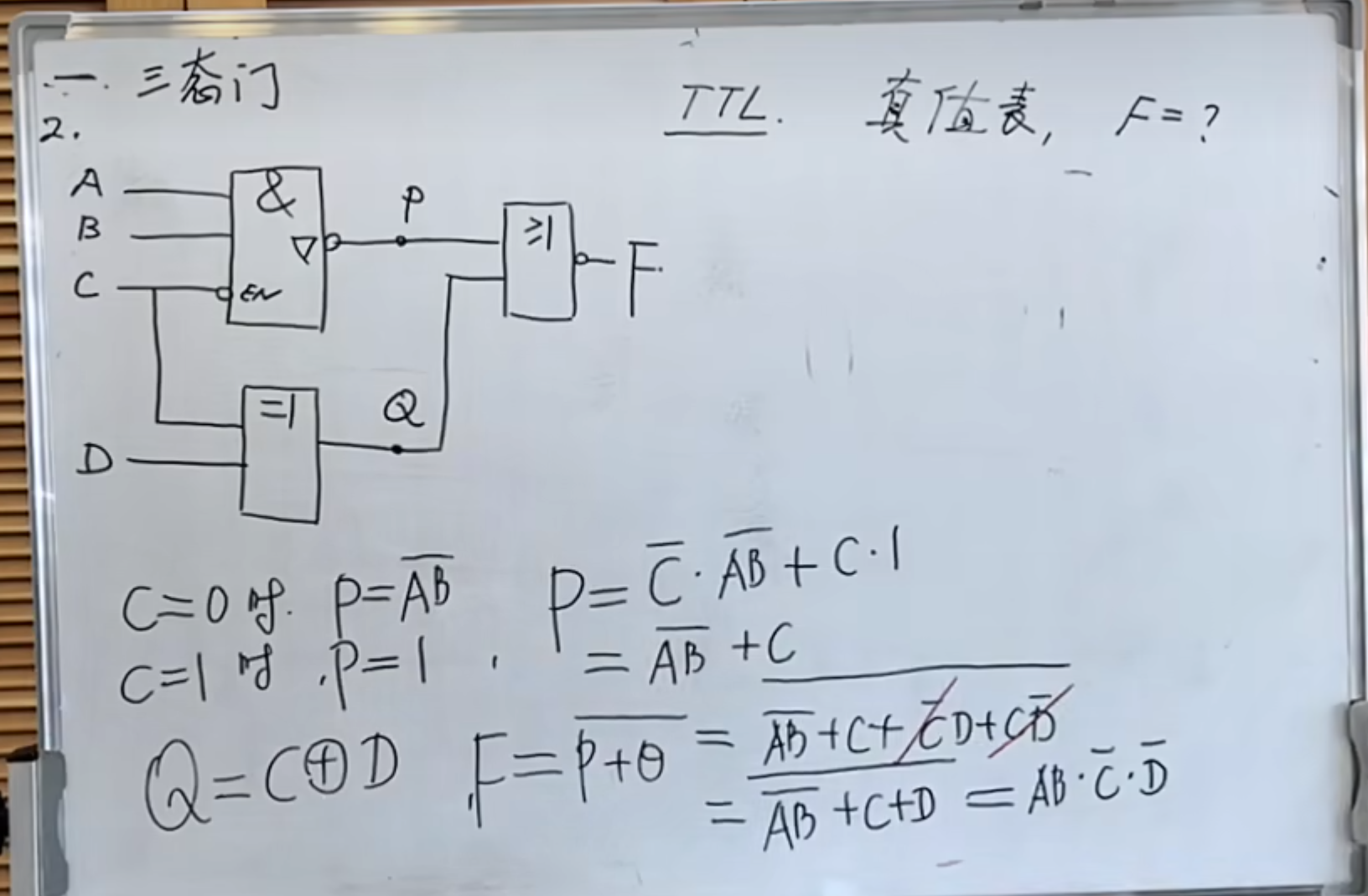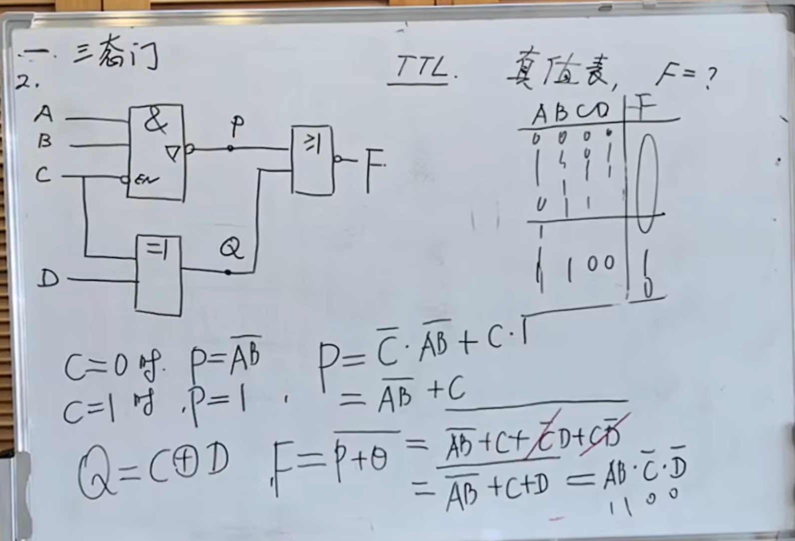 从后往前分析,首先是 F 之前的异或门,这里要清晰知道异或门的反相器性质